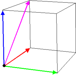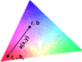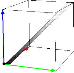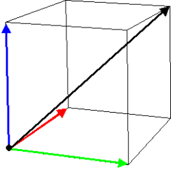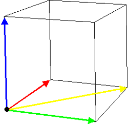 I bilden ovan kan det röda hörnet ses som origo och de två axlarna utgörs av blå-röd och grön-röd.