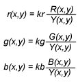 R, G och B är värdena från RGB-modellen omräknat i procent (färg/255). Intensiteten, Y, blir då ett värde mellan 0 och 1.