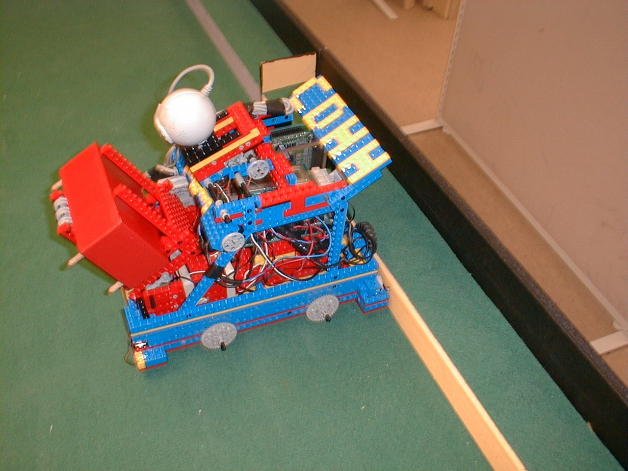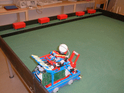 Skulle roboten träffa på ett hinder innan den hunnit docka mot sargen backar den tillbaka och kör fram ett par gånger för att få den andra roboten ur läge. Därefter kör den upp mot den gemensamma kajen för att komma runt motståndaren. Den ställer sig en bit bort nära motståndarens sarg kant och väntar lite så att den hinner flytta på sig.