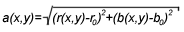 Varje pixel (x,y) undersöks i bilden som skall konverteras. Till att börja med beräknas intensiteten i punkten: