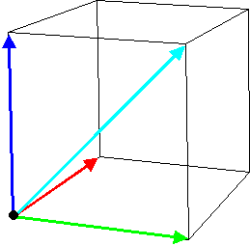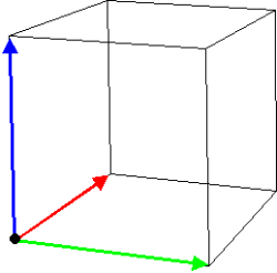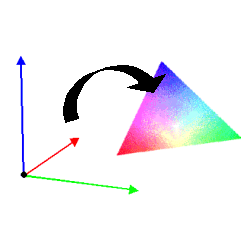 I bilden ovan kan det röda hörnet ses som origo och de två axlarna utgörs av blå-röd och grön-röd.