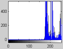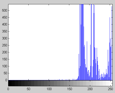 Histogrammet, där tröskelvärdet sätts till 240. Klicka på bilden för större bild.