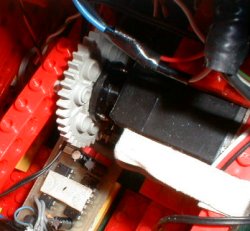 Till gaffeln används en servomotor som gör att man genom att ställa ut en vinkel till motorn exakt kan bestämm hur högt gaffeln skall lyftas.