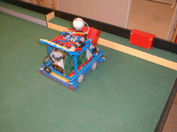 Finns det en pall tar roboten den och vänder upp för att köra hem igen. Skulle den hindras på vägen stannar den och lägger pallen på spelplanen. Ingen robot kan ta upp pallen då, och eftersom två redan är säkrade i boet så gör det att minst ett oavgjort resultat kommer att nås.
